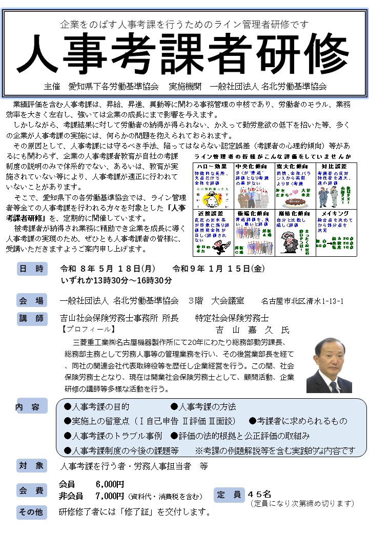 被考課者が納得され業務に精励でき、企業を成長に導く人事考課の実現のため、ぜひとも人事考課者の皆様に、ご受講いただきますようご案内申し上げます。