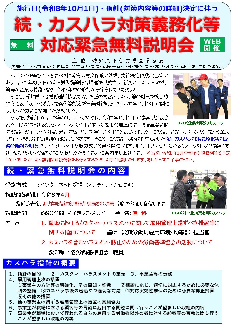 続・カスハラ対応義務化等 対応緊急無料説明会