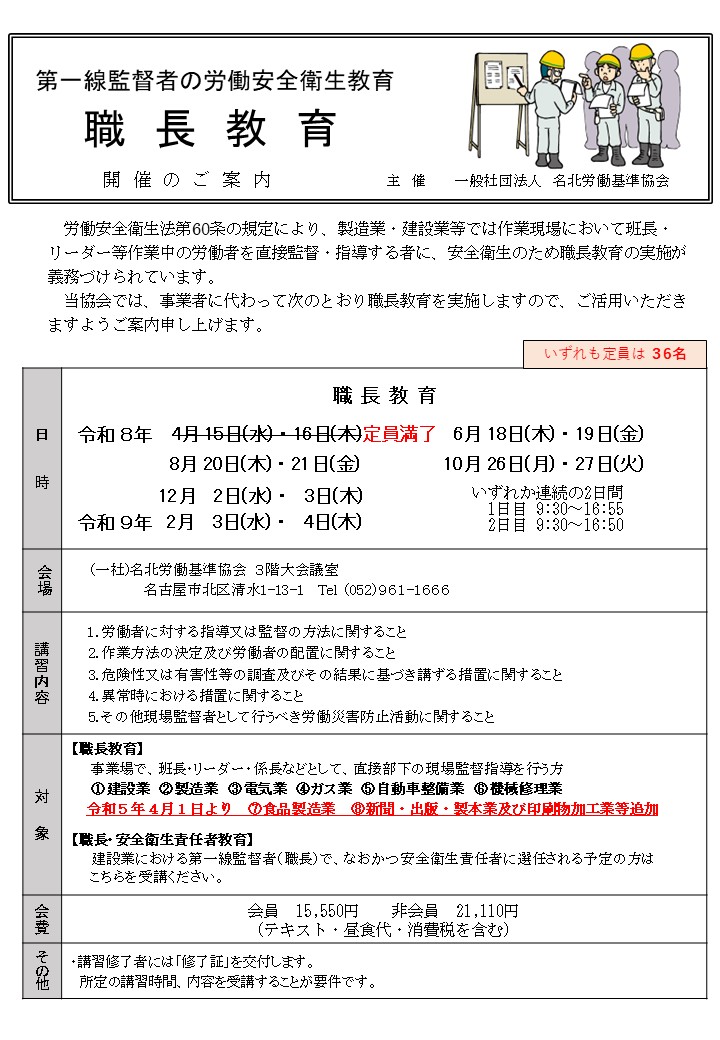 C06 職長教育(製造業用)開催のご案内
