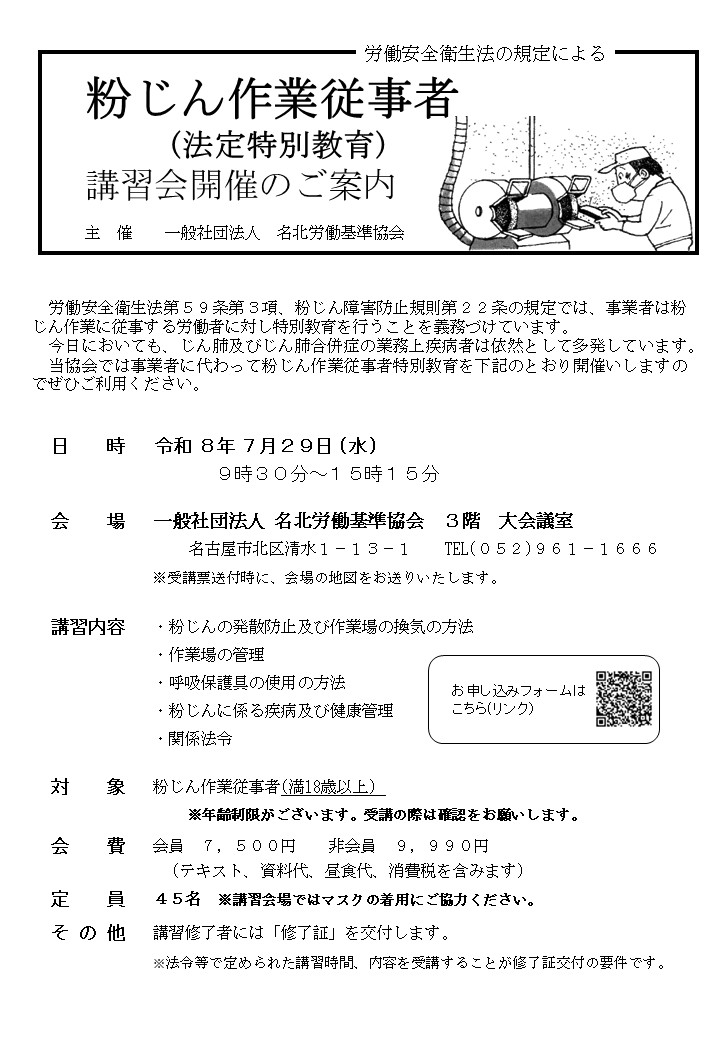 講習会のお申込み受付は、(一社)名北労働基準協会の協会員を優先といたします。