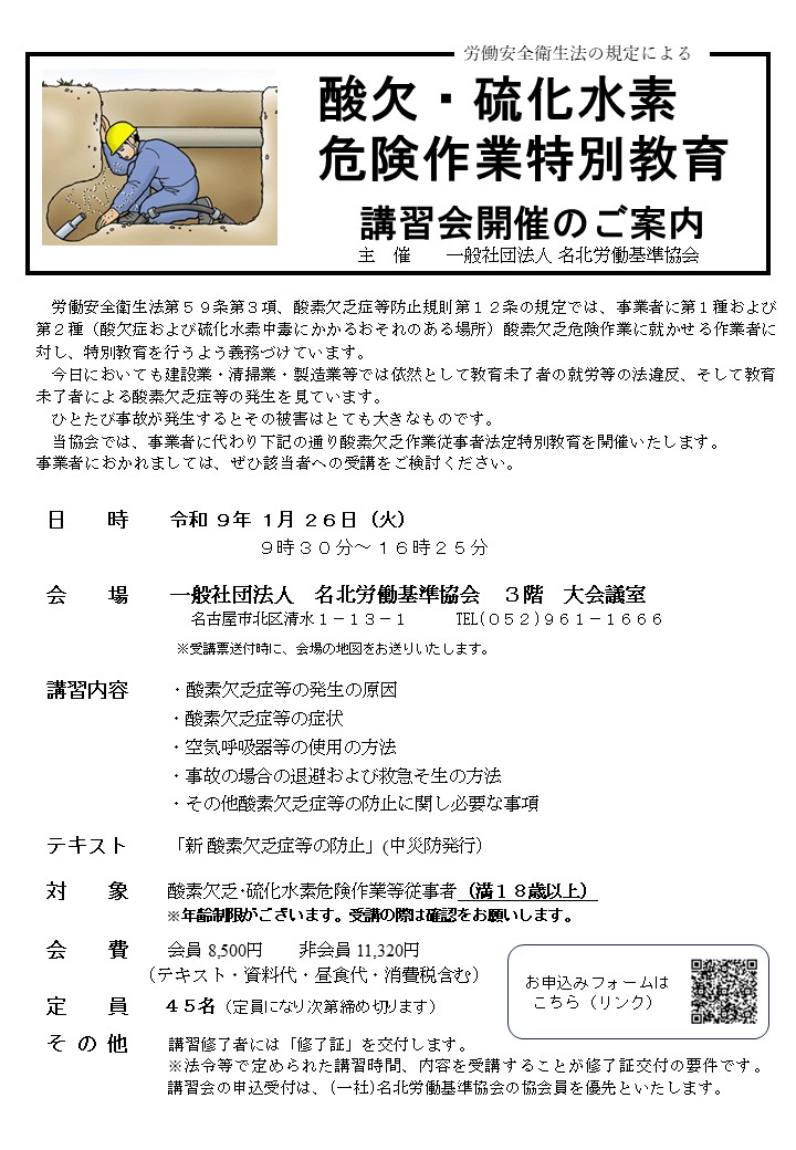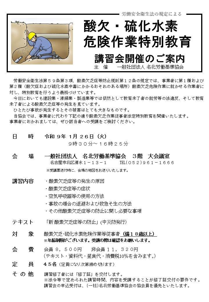 C14 酸素欠乏危険作業特別教育講習会開催のご案内