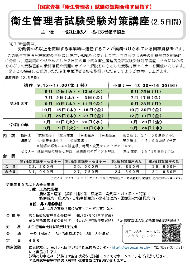 ぜひこの機会にご受講いただき衛生管理者資格を取得いただきますようご案内いたします。